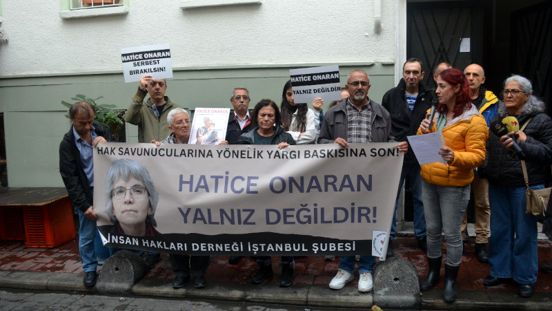 Açıklamada, "Hak savunucularına yönelik yargı baskısına son. Hatice Onaran yalnız değildir" pankartı açıldı. Mektubu İHD Hapishane Komisyonu'ndan Meral Nergis Şahin okudu. Onaran'ın Hapishane Komisyonu üyesi olduğunu, tutsakların hakları için mücadele ettiğini ve bu nedenle tutuklandığını hatırlatan Şahin, Onaran'ın 60 yaşında, yüzde 79 engelli raporu olduğunu ve kolon kanseri tedavisi gördüğünü tedavi, tetkik ve kontrolleri devam ederken tutsak edildiğini kaydetti.