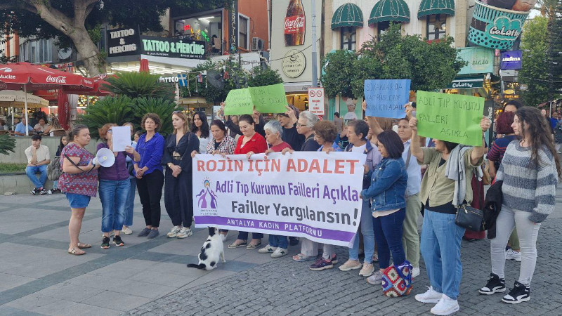 Antalya Kadın Platformu, Rojin Kabaiş'in şüpheli ölümüne ilişkin Adli Tıp Kurumu'nun (ATK) delilleri karartması ve raporları geciktirmesine karşı Attalos Meydanında basın açıklaması yaptı.