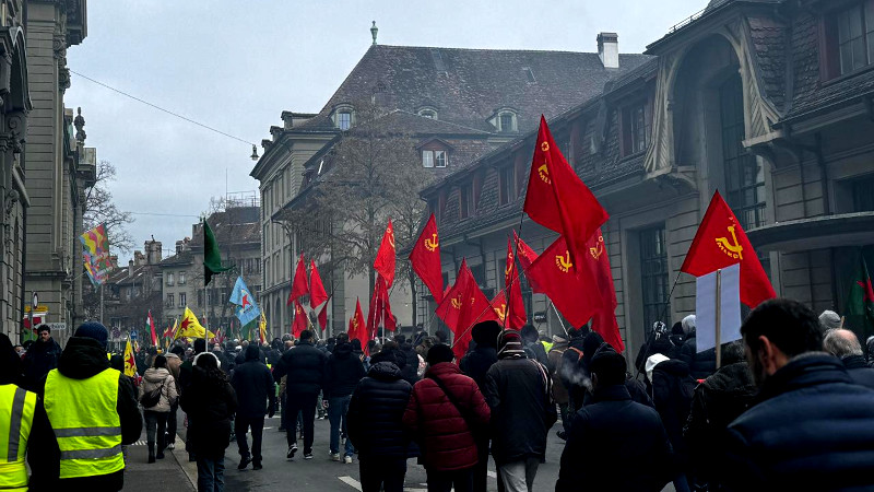 İsviçre'nin başkenti Bern'de bir araya gelen binler Rojava'nın statüsü sağlanana kadar mücadeleyi sürdüreceklerini vurguladı. Schützenmatte Meydanında bir araya gelen kitle, YPG, YPJ ve Ala Rengîn bayrakları taşıdı. Abdullah Öcalan'ın posterlerinin taşındığı eylemde, üzerinde Rojava direnişine dikkat çeken çok sayıda pankart ve afiş açıldı. Eyleme katılan çocuklar kanlı beyaz kefenler giyerken, kadınların örgülü saçları dikkat çekti. Birçok eylemci ulusal kıyafetleriyle yürüyüşe katıldı. Direnişte şehit düşen savaşçıların fotoğrafları da taşındı.