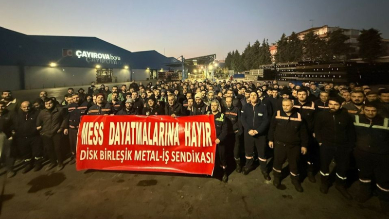 DİSK'e bağlı Birleşik Metal-İş Sendikasına üye metal işçileri, MESS patronlarıyla gerçekleştirilen grup toplu sözleşme görüşmelerinde anlaşma sağlanamayınca 1 saat iş bırakma kararı aldı.