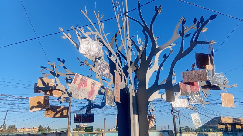 "Em hene, em xwedî tekoşîne ne/Biz varız, mücadele sahibiyiz" şiarıyla yapılan sergide dünyadaki kadın direnişçilerin, Rojava ve Türkiye'de kadın devrim şehitlerinin resimleri asıldı.
