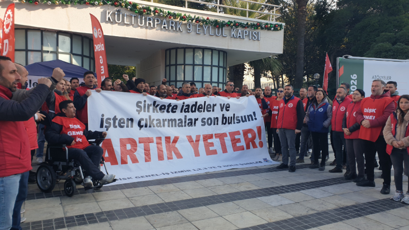 Genel-İş İzmir 1, 2, 3 ve 9 Nolu şubelerde örgütlü işçiler, Kültürpark 9 Eylül Kapısı önünde kurulan direniş çadırı önünde bir araya geldi. Sendika yöneticileriyle CHP'li İzBB patronu arasındaki görüşme öncesi açıklama yapan Genel-İş Sendikası İzmir 9 Nolu Şube Başkanı Sedat Kenar, taleplerinin net olduğunu vurguladı. Kenar, "Bugün de eylemimizi sürdürerek taleplerimizi dile getiriyoruz. Kabul edilebilir bir ödeme takvimi istiyoruz. 350 arkadaşımızın mağdur edildiği havuz sisteminin sonlandırılmasını talep ediyoruz. Son günlerde haddini aşan söylemlerle karşı karşıya kalıyoruz. Bizim tek bir derdimiz var; aşımız, ekmeğimiz, onurumuz" dedi. Kenar, dört gündür belediyeden resmi bir çağrı gelmediğini, yaşanan sürecin farklı yönlere çekilmeye çalışıldığını ifade etti.