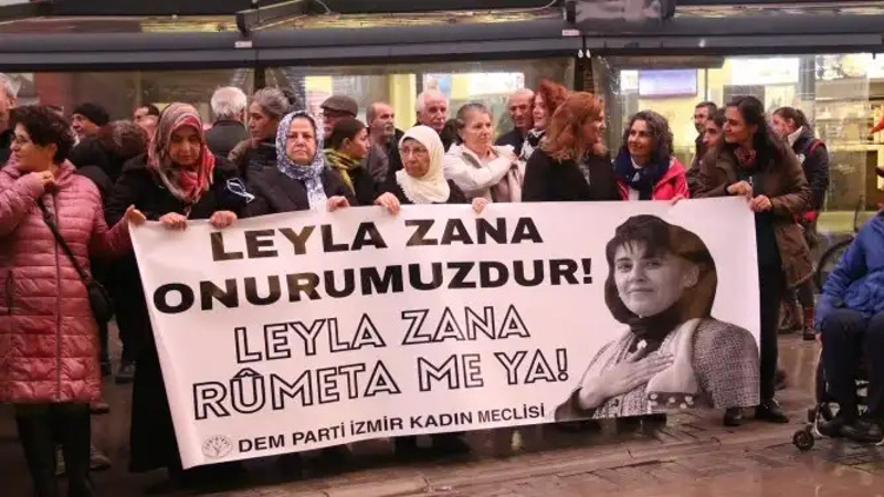 Halkların Eşitlik ve Demokrasi Partisi (DEM Parti) İzmir Kadın Meclisi, Bursaspor-Somaspor maçında Kürt siyasetçi Leyla Zana'ya yönelik cinsiyetçi saldırıyı protesto etti. İzmir'de Türkan Saylan Kültür Merkezi önünde yapılan eylemde Türkçe ve Kürtçe "Leyla Zana onurumuzdur" pankartı açıldı.