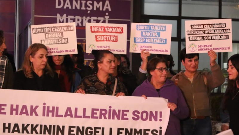 DEM Parti Ankara Kadın Meclisi Sözcüsü Nebahat Çalpan, İdare ve Gözlem Kurullarının keyfi gerekçelerle kadınların şartlı tahliye hakkını engellediğini belirterek, "Kurulun aldığı kararlar açıkça politik bir cezalandırma aracına dönüşmüştür. Koşullu salıverilme hakkını kazanmış kadınların özgürlükleri keyfi biçimde gasp ediliyor. 'Hücre cezası', 'pişmanlık göstermeme', 'psikologla görüşmeme', 'kitap/kursta yer almama' gibi infazla ilgisi olmayan bahaneler, kadınların özgürlüğünü engellemek için kullanılıyor. Hiçbir somut gerekçe olmadan, yalnızca 'pişmanlık göstermediği', 'devletin politikalarını eleştirdiği', 'törenle karşılanabileceği', 'toplumsal etki yaratabileceği' gibi hukuksuz ve soyut ifadeler şartlı tahliye engeline gerekçe yapılmaktadır" dedi.
