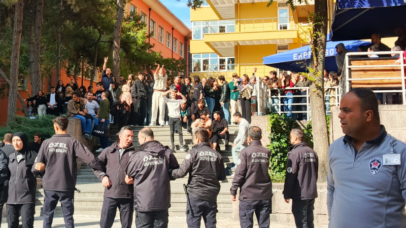 Kampüsteki özel güvenlikler de öğrencilerin bildiri dağıtmasına "dekanlıktan izinli değil" diyerek engel olmaya çalıştı.