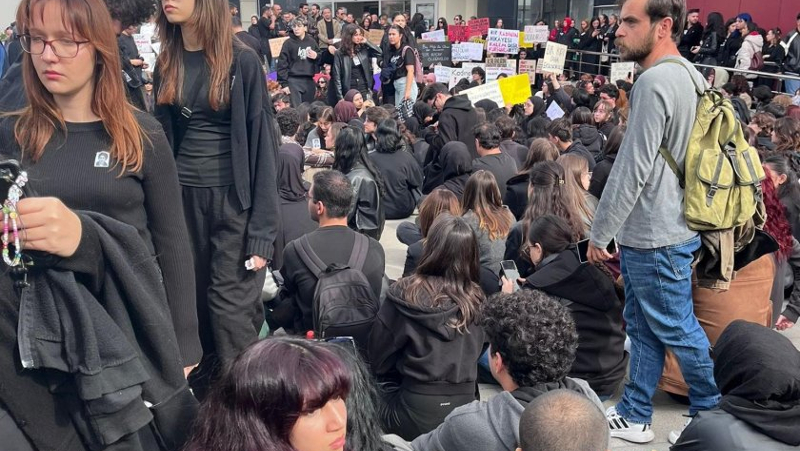 "Katledilen kadınlar isyanımızdır", "Buraya gelmeme izin vermeyen annem için de geldim" dövizlerini taşıyan öğrenciler, daha sonra rektörlük binasına yürüyerek, rektöre istifa çağrısı yaptı.