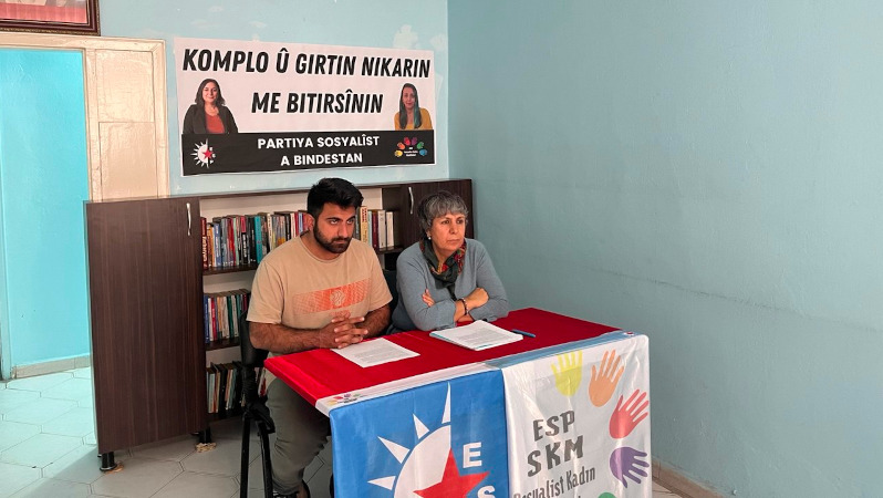 ESP Diyarbakır İl örgütü, partilerinin Eş Genel Başkanı Hatice Deniz Aktaş ile SKM Genel Meclis üyesi ve ETHA muhabiri Ebru Yiğit'in tutuklanmasına ilişkin basın toplantısı yaptı. Sosyalistlere yönelik baskı ve yargılamaların politik olduğu vurgulanan açıklamada, "Deniz ve Ebru yoldaşlar, hapishaneye giderken devrim ve sosyalizm şiarını yükseltmeye devam ettiler. Bizler de onların dışarıdaki sesi soluğu, düşlerinin dışarıdaki takipçisi olacağız" denildi.