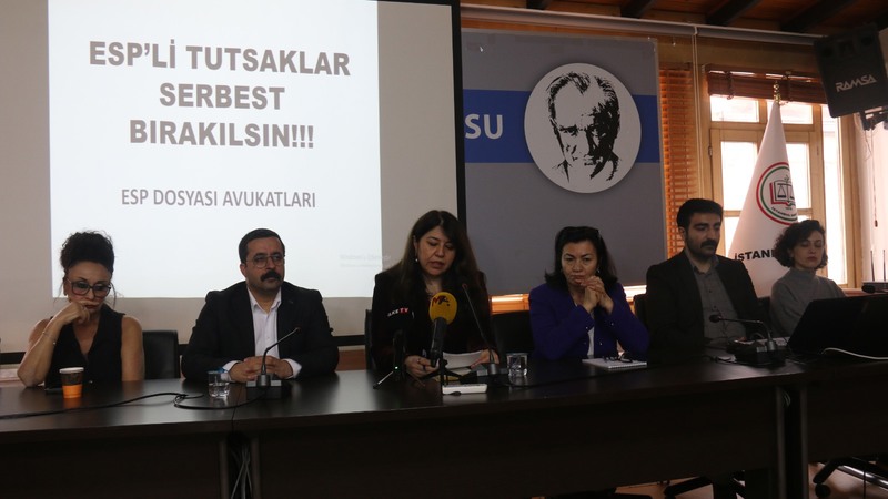 ESP Dosyası Avukatları, 3 Şubat'ta Ezilenlerin Sosyalist Partisi (ESP) ve sosyalist kurumlara dönük gerçekleşen siyasi kırım saldırısında yaşanan hukuki süreç ve hak ihlallerine dair İstanbul Barosu Galata Kültür Merkezi'nde basın toplantısı gerçekleştirdi. Toplantıda İnsan Hakları Derneği (İHD), Çağdaş Hukukçular Derneği (ÇHD), Özgürlük için Hukukçular Derneği (ÖHD), Adalet için Hukukçular, Demokrasi İçin Hukukçular temsilcileri yer aldı.