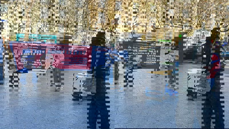 Paris'in emekçi semtlerinden biri olan Menilmontant metrosu önünde stant açarak İnisiyatif, konuşmalar yaptı, bildiriler dağıttı.