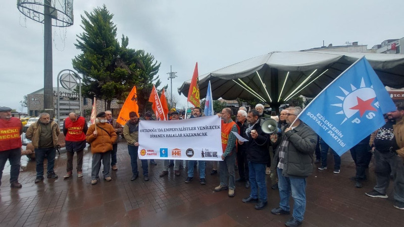 "Ortadoğu'da emperyalistler yenilecek, direnen halklar kazanacak" pankartı taşınan eylemde basın metnini Mustafa Zorlucan okudu.