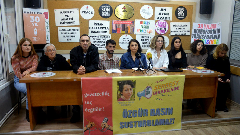 Dicle Fırat Gazeteciler Derneğinin hazırladığı raporu hatırlatan Çelik, "Ekim ayında Türkiye'de gazetecilere dönük baskılar zirveye ulaşmıştır. Gazeteci Hakan Tosun, Esenyurt'ta ailesinin yanına giderken darp edilmesi sonucu geçirdiği beyin kanaması neticesinde katledildi. Ancak iktidar yetkilileri bu katliamın açıklığa kavuşması için hala hiçbir adım atmamıştır. Aynı dönemde 5 gazeteci saldırıya uğramış, 7 gazeteci kötü muameleye maruz kalmış ve 15 gazetecinin haber takibi engellenmiştir" dedi. Çelik, Erkılınç'ın da işçilerin, emekçilerin, Kürt halkının ve toplumsal muhalefetin sesini görünür kılmış, kadınların, lubunyaların ve politik tutsakların sesini topluma taşıdığı için yoksullaştırma, sömürü ve devlet şiddetini görünür kılmaya çalıştığı için tutuklandığını belirtti.