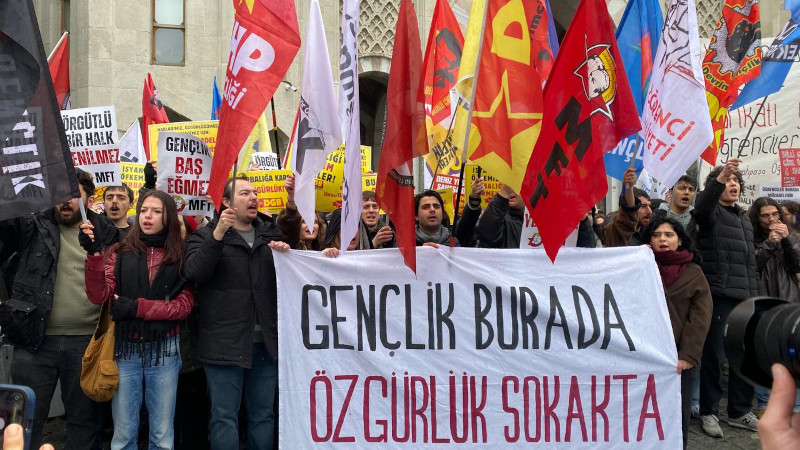 "Gençlik burada özgürlük sokakta" pankartının açıldığı eylemde "Bu daha başlangıç mücadeleye devam", "Kurtuluş yok tek başına. Ya hep beraber ya hiçbirimiz" sloganları atıldı.