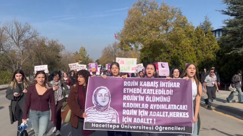 Hacettepe Üniversitesi öğrencileri, Van Yüzüncü Yıl Üniversitesi öğrencisi Rojin Kabaiş'in katledilmesine tepki göstermek için kampüs içinde yürüdü. Yürüyüş boyunca, "Bijî berxwedana jinan", "ATK koruma DNA'yı açıkla" ve "Jin jiyan azadî" sloganları atıldı. Eylemde, "Rojin Kabaiş intihar etmedi, katledildi. Rojin'in ölümünü kadınlar aydınlatacak. Rojin için adalet herkes için adalet" pankartı açıldı, Rojin Kabaiş'in fotoğrafı ile "Çi hat serê Rojîn Kabaişê" ve "Kadın cinayetlerini durduracağız" dövizleri taşındı.