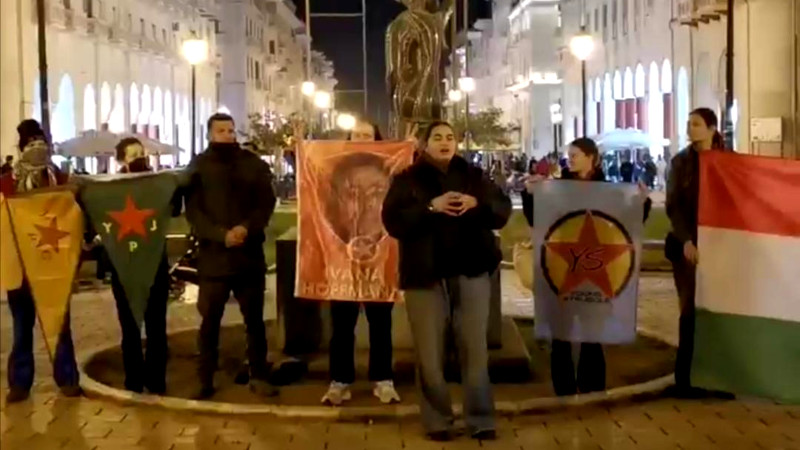 Sınırda durdurulan ve geri gönderilen Halklar Kervanında bulunan genç enternasyonalistlerin gözaltına alınmasına karşı Yunanistan'ın Thessaloniki kentinde açıklama yapıldı, "Kobanê'ye doğru yola çıktık, ne sınırlar ne de baskılar bizi durduramaz" dendi.