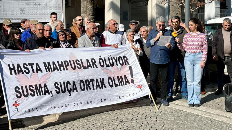 İnsan Hakları Derneği (İHD) İzmir Şubesi, hasta tutsaklar için 365. hafta eyleminde Konak eski Sümerbank önünde yan yana geldi. Eylemde, "Hasta mahpuslar ölüyor, susma suça ortak olma" pankartı açıldı.