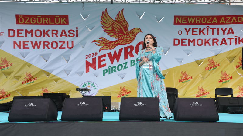 "2026 Newrozu demokratik toplumu inşa etmenin çağrısıdır" diyen Hatimoğulları, "Geçtiğimiz sene 27 Şubat'ta Sayın Abdullah Öcalan'ın çok tarihi bir çağrısı olmuştu. Barış ve Demokratik Toplum Çağrısı 2026 Newrozu tam da bu çağrının demokratik toplumu inşa etmenin çağrısıdır. Ve alanlar, meydanlar bu çağrıya kulak veriyor" diye konuştu.