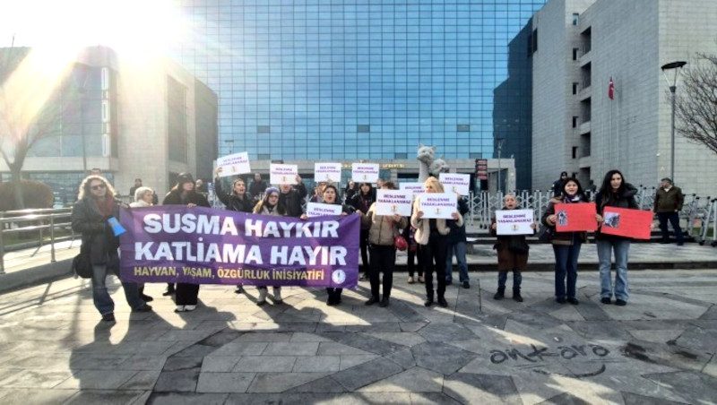 Açıklama alanında "Susma haykır katliama hayır" pankartı açılırken; "Barınaklarınız kan kokuyor" ile "Mansur, elini hayvanlardan çek" sloganlarını attı. İktidarın 2024 yılında Hayvanları Koruma Kanunu'nda yaptıkları değişiklik ile sokak hayvanlarının katledilmesinin önünü açtığını söyleyen inisiyatif üyesi Güliz Gündüz, CHP'nin bu yasayı kabul etmedikleri yönündeki açıklamalarına rağmen artarak devam eden hayvan katliamına dikkat çekti. Gündüz, "Bir soğuk hava deposunda köpeklerin canlı canlı poşetlendiği, can havliyle poşeti yırtıp kaçan bir köpeğin perişan bir halde soğuk hava deposunda eksi derecelerde ölümü beklediği bir video yayımlandı. Mansur Yavaş, olay hakkında soruşturma açtığını söyledi ve videonun Karataş Barınağına ait olmadığının tespit edildiğini açıkladı. Ancak olay günü barınak önüne giden yaşam hakkı savunucuları ve olayı tespit edeceklerini bildikleri avukatlar içeri alınmadı, deliller karartıldı; vinçlerle kapatılan barınağın etrafında görüntü alınması engellenmeye çalışıldı" dedi.