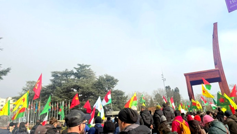 Cihatçı faşist HTŞ çetelerinin, Kürtlere yönelik saldırılarını protesto etmek amacıyla binlerce Kürt, İsviçre'nin Cenevre kentinde bulunan Birleşmiş Milletler (BM) binası önünde bir araya geldi. Eyleme çok sayıda İsviçreli de destek verirken, Rojava direnişine destek sloganları atıldı. Binler, BM'nin saldırıları durdurması yönünde adım atmasını talep etti.