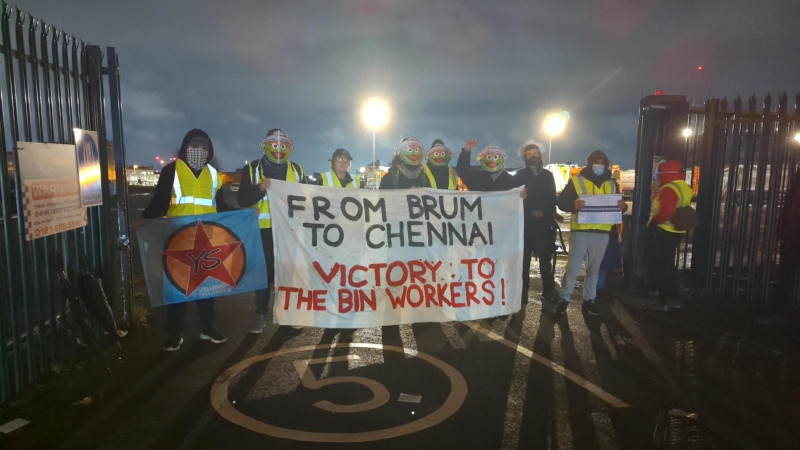 Yıllık 8 bin sterlin ücret kesintisi ve çalışma koşullarının kötü olmasına karşı 11 Mart'tan bu yana grevde olan işçilerin grevi ilk önce askerler eliyle kırılmak istenmişti. İşçilerin haklarını vermek yerine kentte çöp yığınları oluşmasına, halkın sağlığına tehdit oluşturmasına göz yuman Birmingham Belediye yönetimi, şimdi de taşeron firma aracılığıyla grev kırıcılığına soyundu. Grevdeki işçiler ve üyesi oldukları Unite Sendikası, grev kırıcılığı yapan taşeron firma ve çöpleri toplayan işçileri engellemeye yönelik çeşitli eylemler yaparken, mahkeme kararıyla işçilerin grev kırıcılarını engelleme eylemleri yasaklandı. Bunun üzerine İngiltere'deki sosyalist ve antiemperyalist örgütler, grev kırıcı firmaya yönelik blokaj eylemi yaptı.