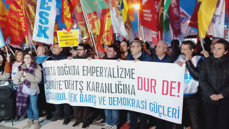İstanbul Emek Barış ve Demokrasi Güçleri Rojava'ya dönük saldırılara karşı yaptığı eylemde "Yüz yıllardır emekçilerin ve ezilenlerin mücadelesiyle kazanılmış temel insani değerler de hedef alınmaktadır" dedi.