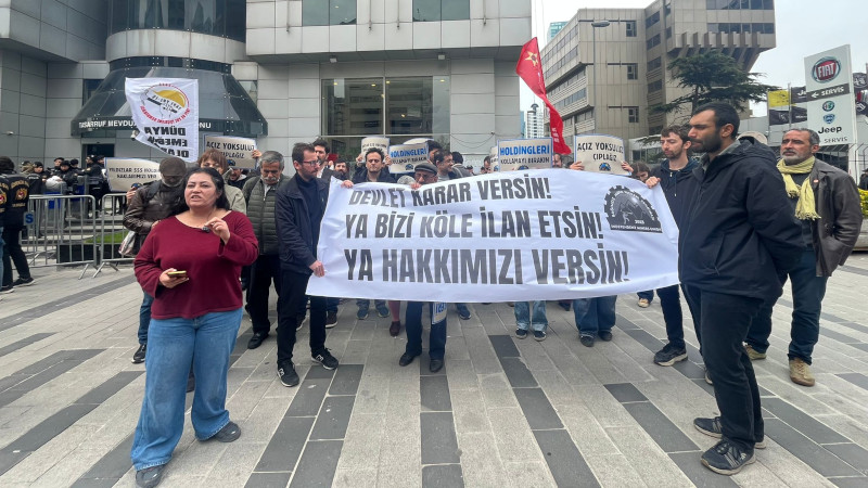 Enerji ve Tabii Kaynaklar Bakanlığı önünde açlık grevine başlayan ve gözaltına alınan Doruk Madencilik işçilerine destek için İstanbul'da Tasarruf Mevduatı Sigorta Fonu (TMSF) önünde düzenlenen eylemde, "Bizi açlığa mahkum etmeye çalışanlar bilsin ki bizi açlıkla korkutamazsınız; haklarımızı alana kadar açlık grevindeyiz" denildi.