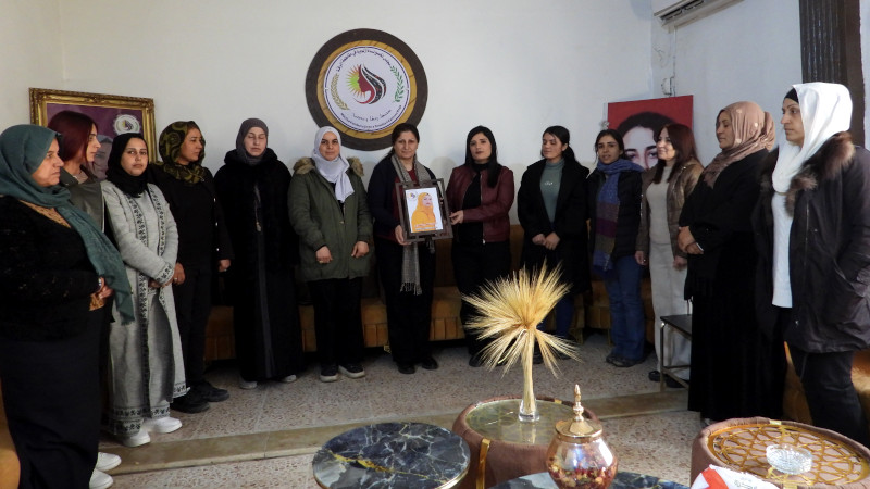 Devrimci Komünist Kadınlar (JKŞ), Hesekê, Qamişlo, Kobanê ve Dirbesîyê JKŞ meclis üyelerinden oluşan bir heyetle, Tişrîn Barajına giderken işgalci Türk devletinin saldırıları sonucu 8 Ocak 2025'te şehit düşen Reqa Zenûbya Kadın Topluluğu yöneticilerinden Kerem Ehmed El Şihab El Hemed'i anısına Zenûbya Kadın Toplulukları Birliğinin Reqa Şubesini ziyaret etti.
