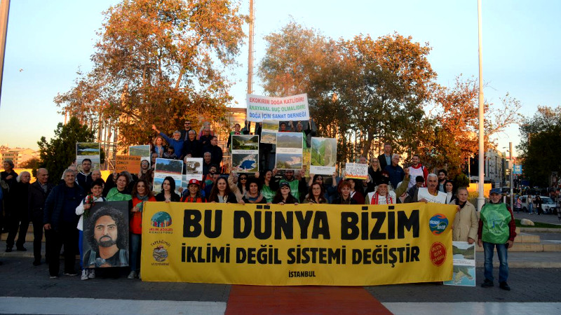 Doğa İçin Adalet, Ekoloji Birliği, Halkın İklim Kanunu, İklim Adaleti Koalisyonu ve Toprağımızı Vermiyoruz'un çağrısıyla iklim aktivistleri, 15 Kasım Küresel İklim Eylemi Gününde Kadıköy rıhtımda yan yana geldi. "Bu dünya bizim, iklimi değil sistemi değiştir" pankartı açılan eylemde, Türkiye'nin farklı yerlerindeki doğa katliamlarını gösteren fotoğraflar taşındı.
