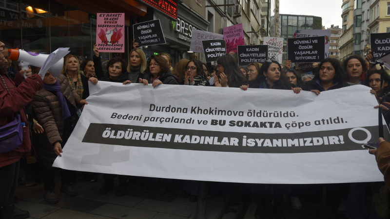 Şişli Kuyulubağ sokakta göçmen Durdona Khokimova'nın katledilmesinin ardından başı kesilmiş cansız bedeninin bir çöp konteynerinde bulunmasının ardından kadınlar sokağa çıktı. Osmanbey metro durağında bir araya gelen çok sayıda kadın örgütü, kadın cinayetlerine karşı Durdona Khokimova'nın cansız bedeninin bulunduğu sokağa doğru yürüdü. Eylemde kadınlar failin koruyan, aklayan erkek devlet olduğuna vurgu yaptı.