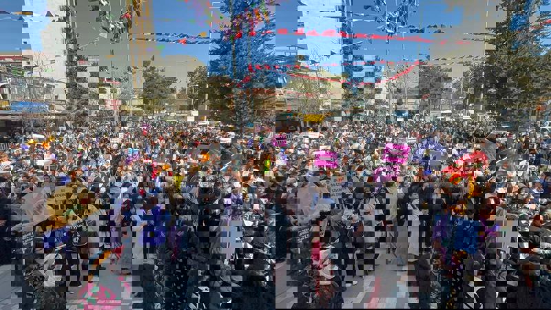 ABD-İsrail'in İran'a yönelik saldırılarına dikkat çeken Pervin Buldan, "Bir an önce İran'a yönelik savaş durmalı ve orada Kürt halkı başta olmak üzere tüm halklar eşit yurttaş olarak yaşamalıdır" diye konuştu. Pervin Buldan'ın konuşmasının ardından Abdullah Öcalan'ın 8 Mart Mesajı Kürtçe ve Türkçe okundu. Etkinlik müzik dinletisi ile son buldu.