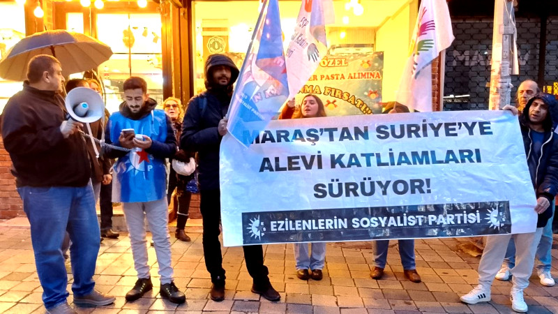 Ezilenlerin Sosyalist Partisi (ESP), Alevi katliamlarına karşı İstanbul'da 1 Mayıs mahallesinde eylem yaptı. "Maraş'tan Suriye'ye Alevi katliamları sürüyor" pankartının açıldığı eylemde devrimci sosyalistler, halklara yönelik katliamlara karşı birleşik mücadele çağrısı yaptı.