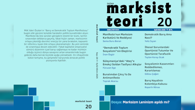 Marksist Teori dergisinin 20. sayısı çıktı. Derginin son sayısı "Marksizm leninizm aşıldı mı" dosya başlığını taşıyor. Dergi sunu yazısıyla ideolojik-teorik mücadelenin güncel ihtiyaçlarına dikkat çekerek, 27 Şubat "barış ve demokratik toplum çağrısı"ndan bu yana ideolojik-teorik tartışmaların önemine vurgu yapıyor. Marksist Teori dergisinin bu sayısı adeta bir özel sayı çalışması niteliğiyle karakter kazanıyor ve içinden geçilen dönemin başat ideolojik-teorik görevlerinden birine cevap veriyor. "Marksizm leninizm aşıldı mı" dosya yazılarının tümü derginin sunu yazısında da vurgulanan teorik mücadeleye ufuk genişliği ve politik mücadeleye canlılık taşıma perspektifiyle Kürt ulusal demokratik hareketinin başlattığı yeni sürecin temel teorik-programatik tezlerini tartışma konusu yapıyor.