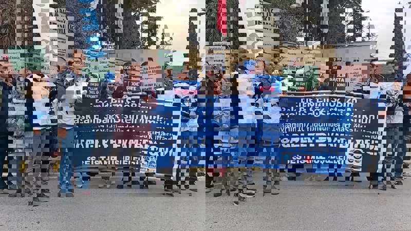 Sağlık emekçileri; tek kalemde ve emekliliğe yansıyacak temel ücret ödenmesini, vergi dilimlerinin yüzde 10'da sabitlenmesini, aile sağlığı merkezlerinde uygulanan yönetmeliğin geri çekilmesini ve deprem bölgesinde yıkılan aile sağlığı merkezlerinin yeniden yapılmasını talep etti.