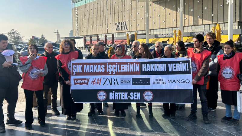 BİRTEK-SEN üyesi Şık Makas işçileri, hak taleplerini duyurmak amacıyla Ankara'daki Kentpark AVM önünde basın açıklaması yaptı. "Dayanışma eylem haftası" kapsamında yapılan açıklamada, 76 gündür grevde olan işçilerin direnişini büyüteceği ve eylemlerin mağazaların önünde sürdürüleceği ifade edildi.