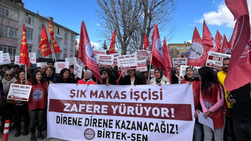 Alacakları ve hakları gasp edilerek işten atılan Şık Makas işçileri direnişin 150. gününde Çalışma Bakanlığı'nın önünde eylem yaptı. BİRTEK-Sen üyesi işçiler, hakları ödenene kadar mücadeleye devam edeceklerini belirtti.