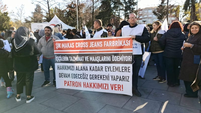 Şık Makas (Cross Jean) işçileri, ödenmeyen alacakları ve kıdem tazminatları için Çorlu'da eylem yaptı. Şirketin kapanarak üretimi Mısır'a taşımaya başlamasının ardından 2024 Kasım ayından bu yana parça parça yaklaşık bin 500 işçi işten çıkarıldı. Patron, işçilerin kıdem ve ihbar tazminatları ile maaş, ikramiye ve izin alacaklarını 8 taksite bölerek ödeyeceğini bildirdi. Ancak birçok işçiye yalnızca bir ya da iki taksit ödendi, ardından ödemeler kesildi. Son işten çıkarılan işçiler ise hiçbir ödeme alamadı.