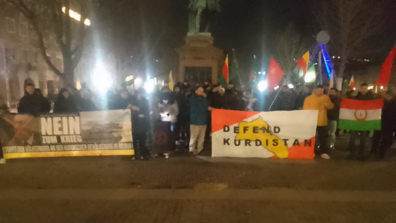 Almanya'nın Stuttgart kentinde cihatçı Heyet Tahrir Şam'a (HTŞ) bağlı ve Türk devleti destekli çetelerin Halep'teki Kürt mahalleleri Şêxmeqsûd ve Eşrefiyê'ye dönük saldırıları protesto edildi.