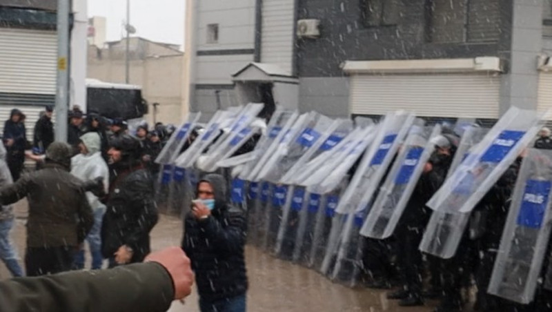 Sınırın etrafını kuşatan polisler, kitleye TOMA'lar, plastik mermiler ve gaz bombalarıyla saldırdı. Polis saldırısına ve yoğun kar yağışına rağmen on binler yürüyüşü sürdürerek, ara sokaklardan sınıra ulaşmaya çalıştı.