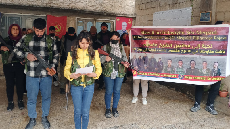 Devrimci Komünist Hareket (TKŞ) ve Devrimci Komünist Kadınlar'ın (JKŞ), Şehit Yılmaz Behrareş Taburu etrafında örgütlenerek halkla birlikte savunma hatlarında yer aldığı vurgulanan açıklamada, Rojava halkına halk taburlarında birleşerek devrimi savunma çağrısı yapıldı.