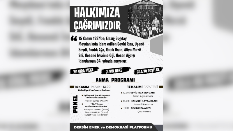 Seyid Rıza anmasına çağrı yapanlar hakkında soruşturma başlatıldı DERSİM - ETHA 18 Kasım 2021 Perşembe