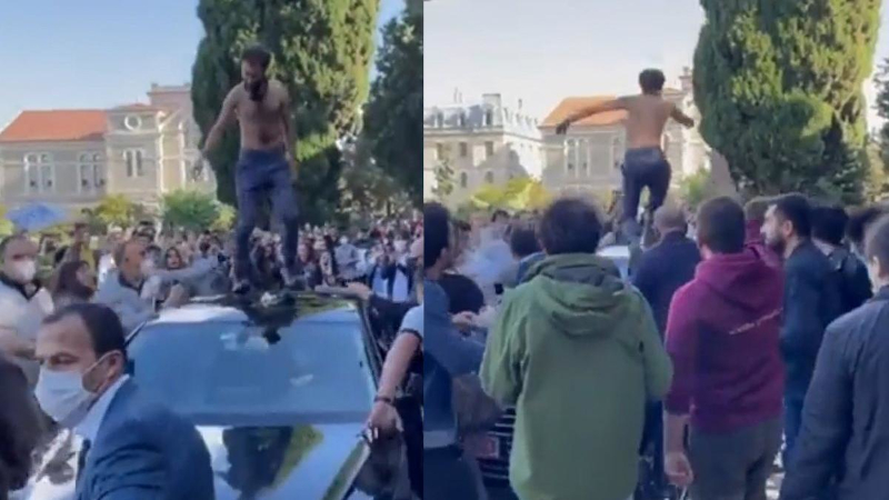 Kayyum rektörü protesto eden Boğaziçili öğrencilere özel güvenlik saldırdı İSTANBUL 4 Ekim 2021 Pazartesi