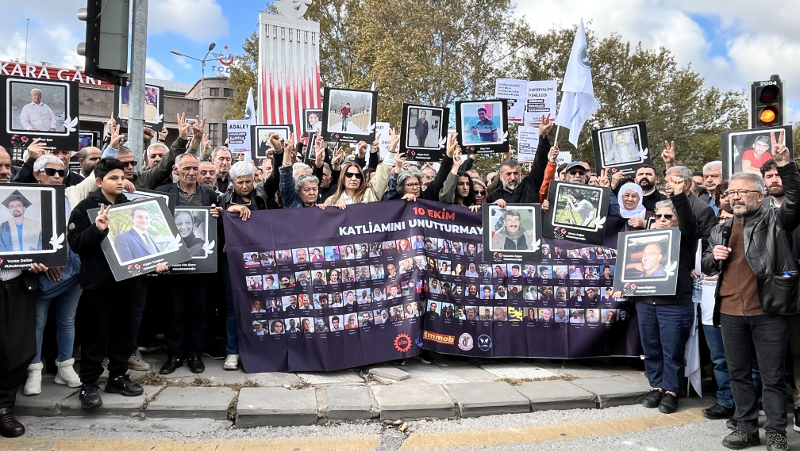 Katliamın yaşandığı gar önünde eylem: Devlet IŞİD eliyle çocuklarımızı katletti ANKARA 10 Ekim 2025 Cuma