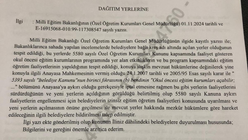 Çevre ve Şehircilik Bakanlığı, belediyelerin açtığı kreşlerin kapatılmasına karar verdi HABER MERKEZİ 25 Kasım 2024 Pazartesi