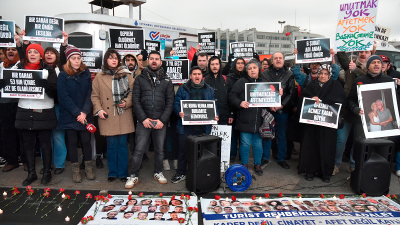 6 Şubat depremlerinin üçüncü yılında Adalet Peşinde Aileler Platformu, İstanbul Kadıköy'de düzenlediği anmada depremde kaybettikleri yakınlarını andı. Sağank yağış altında yapılan anmada, depremin bir "kader" değil ihmal ve rantın sonucu olduğu vurgulanırken, üç yıldır süren yargı süreçlerinde adaletin sağlanmamasına tepki gösterildi. Ailelerin avukatları, sorumluların hesap verne kadar adalet mücadelesinin kararlılıkla sürdürüleceğini belirtti.