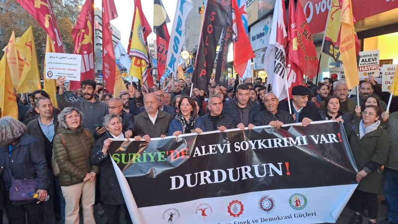 Suriye'de Lazkiye, Ceble ve Humus'ta Alevilere yönelik saldırıların ardından Ankara'da yapılan eylemde, "Katil HTŞ, işbirlikçi AKP" sloganı haykırıldı. Eylemde, katliam saldırılarının durması ve HTŞ çetesine verilen desteğin sona erdirilmesi istendi.