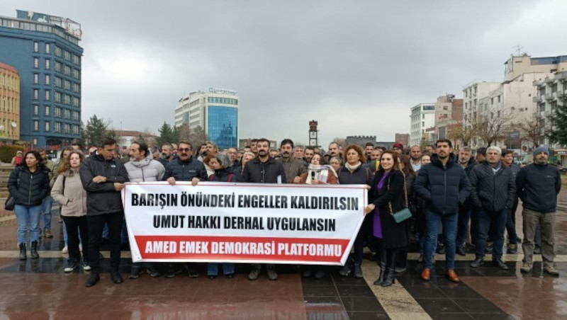 Amed Emek ve Demokrasi Platformu, "umut hakkı"na ilişkin Şeyh Said Meydanında açıklama yaptı. Çok sayıda kişinin katıldığı eylemde, "Barış önündeki engeller kaldırılsın, umut hakkı derhal uygulansın" pankartı açıldı.