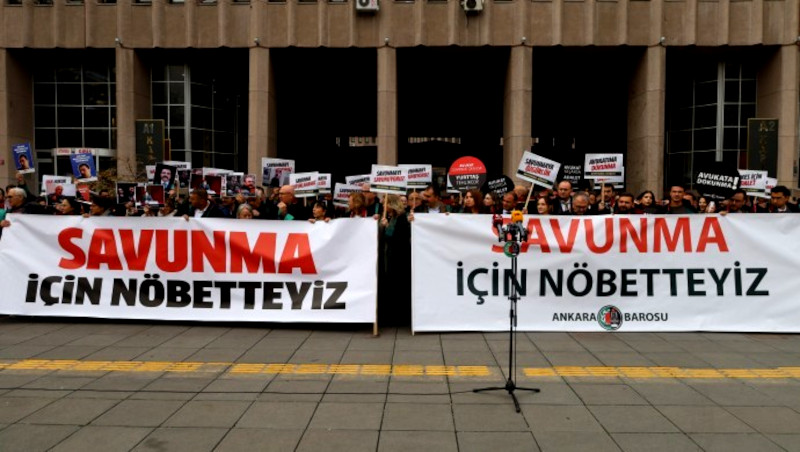 Ankara Adliyesi önünde bir araya gelen Türkiye Barolar Birliği (TBB) ve hukuk örgütleri, "savunmaya özgürlük" nöbetinde savunma yargının üçüncü ayağı değil, halkın devlete karşı ilk güvenlik hattı olduğu kaydedildi. Ankara Barosu Başkanı Mustafa Köroğlu, bir toplumu ve mesleği çürüten esas olgunun hakikati görmemek ve sessiz kalmak olduğunu belirtti. Köroğlu, "Anayasa Mahkemesi kararlarının tanınmadığı, ağır ceza mahkemelerinin 'AYM kararlarını uygulamıyorum' diyebildiği bir ülkede bu nöbet, sadece bir protesto değil. Hukuka yapılan tüm saldırıları durdurmak için tutacağımız bir siper nöbeti" dedi.