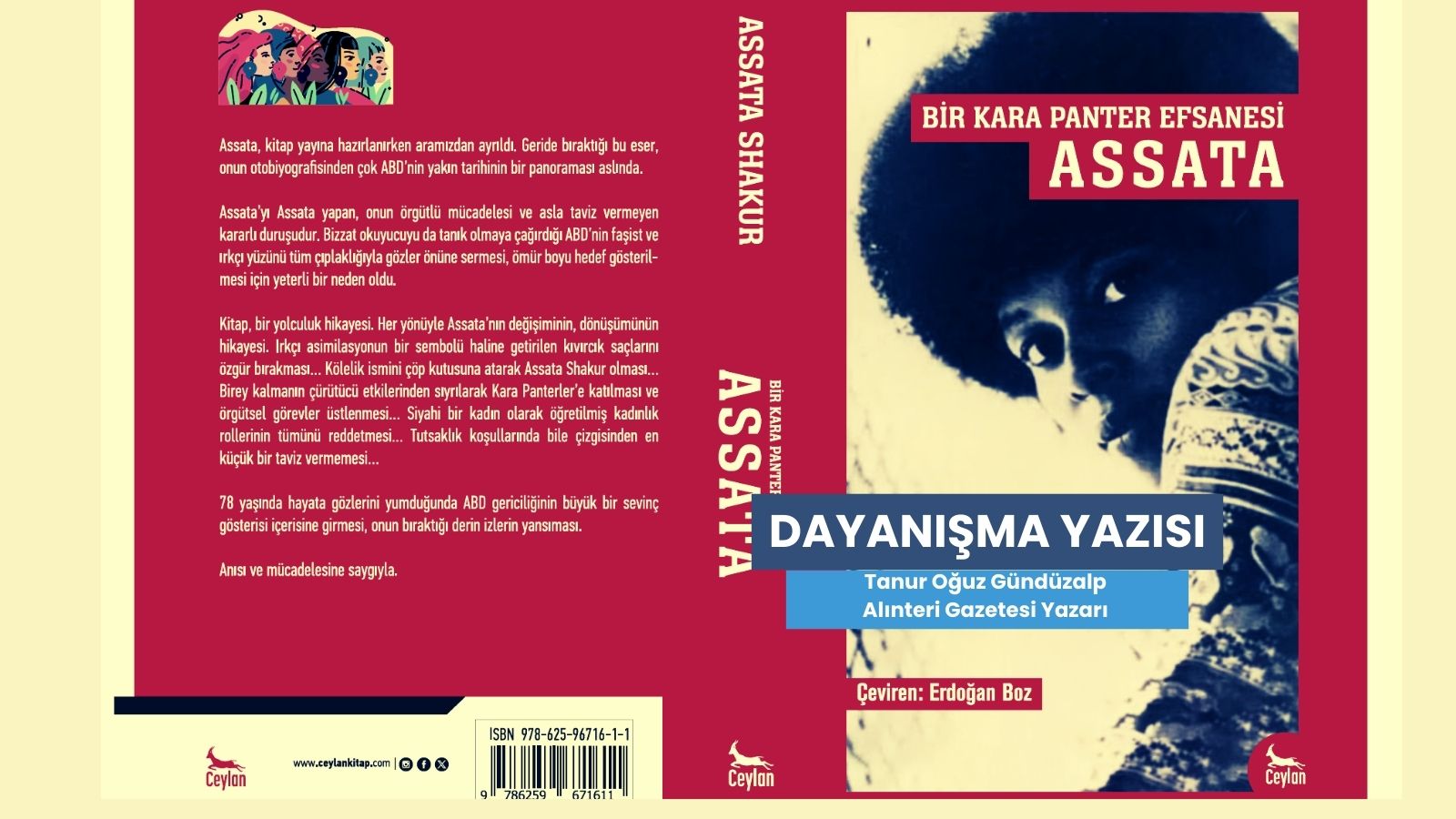 Alınteri Gazetesi Yazarı Tanur Oğuz Gündüzalp, Dayanışma Yazıları kapsamında Ceylan Yayınları'nın okurla buluşturduğu, "Bir Kara Panter Efsanesi Assata" kitabı ile ilgili değerlendirme yazısı kaleme aldı.