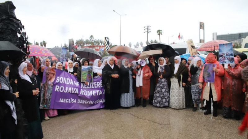 Adana ve Mersin Barış Anneleri Meclisi, HTŞ ve DAİŞ çetelerinin Rojava'ya dönük katliam ve işgal saldırılarında ABD'nin rolüne dikkat çekmek için ABD Adana Konsolosluğu önünde eylem yaptı. "Sonda me kezîzerên me ne Rojava rûmeta me ye" pankartı açan anneler, "Bijî berxwedana Rojava" ve "Yek e yek Kurd yekin" sloganlarını attı.