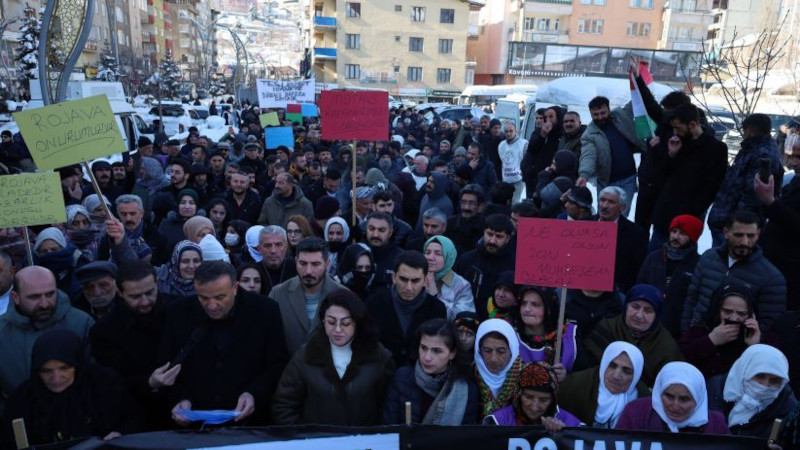 Demokratik Kurumlar Platformu öncülüğünde Hakkari merkezde yürüyüş düzenlendi. Barış Anneleri, DEM Parti milletvekilleri ve çok sayıda siyasi parti, demokratik kitle örgütü temsilcisinin katıldığı yürüyüşte, "Rojava vicdandır, direniştir, özgürlüktür; teslim alınamaz" pankartı açıldı. Eylem boyunca, "Bîjî serok Apo", "Bîjî berxwedana Rojava" ve "Şehit namirin" sloganları atıldı.