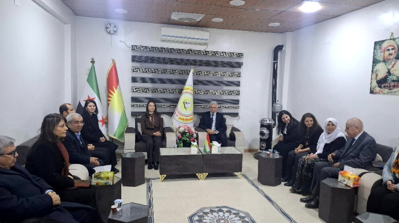Heyet, bugün Kuzey ve Doğu Suriye Demokratik Özerk Yönetimi yetkilileriyle bir araya geldi. Görüşmede Özerk Yönetim Dış İlişkiler Eşbaşkanı Fener Algayit, Başkan Yardımcısı Gülistan Eli ve Özerk Yönetim Şam Temsilcisi Abdülkerim Ömer hazır bulundu.